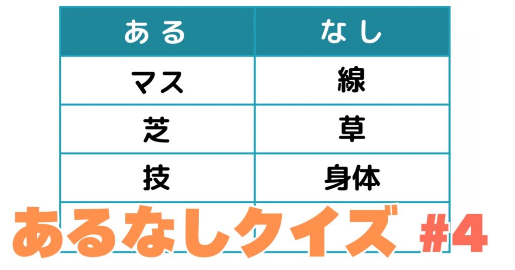 こんにちは!今日の「ひらめきチャレンジ」は、気づくとスッキリ【あるなしクイズ】です。 あるなしクイズは、「あるグループ」と「ないグループ」の言葉の共通点を探すクイズ。ルールはシンプルですが、認知機能や注意力、記憶力の維持に効果があるといわ... -